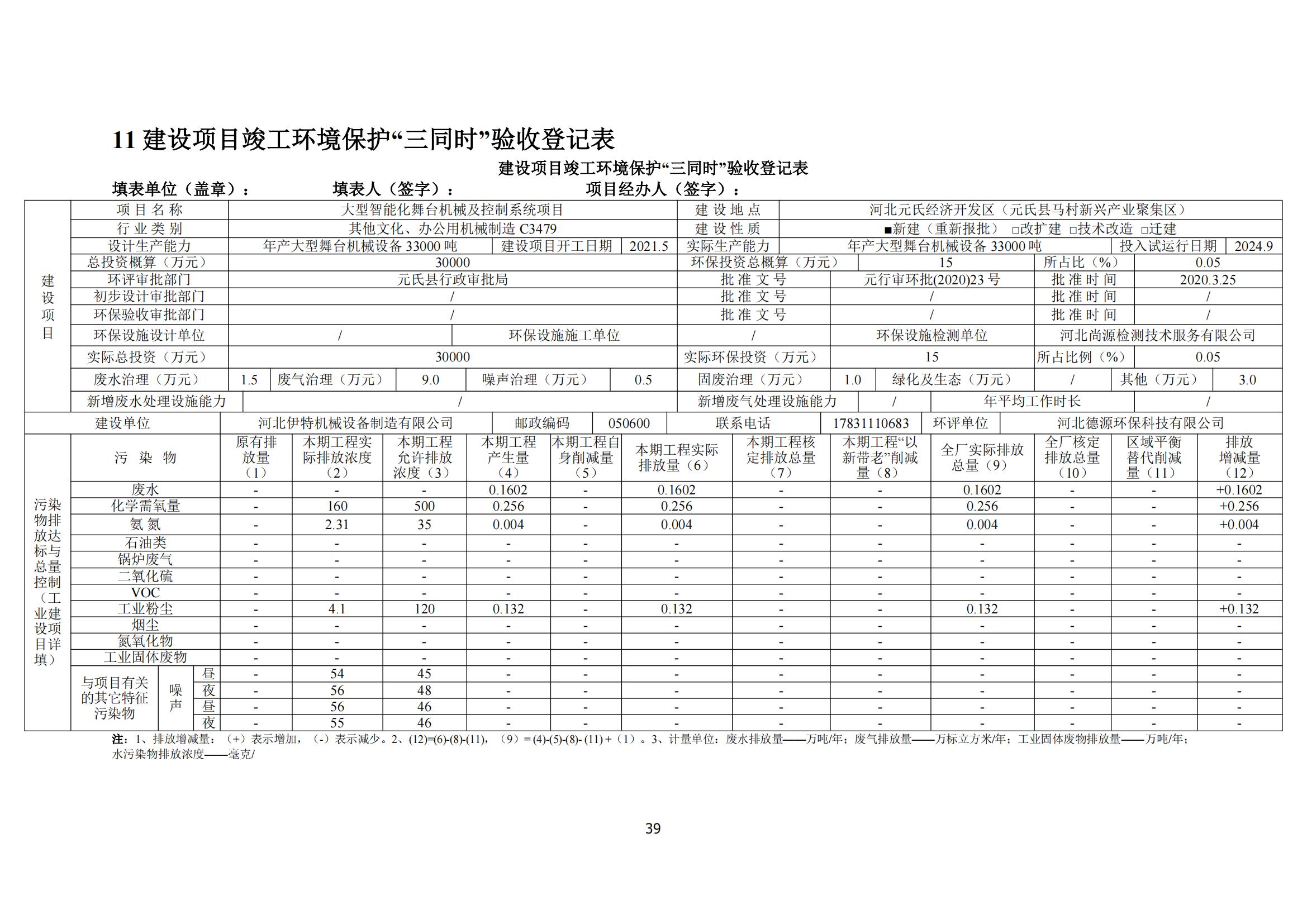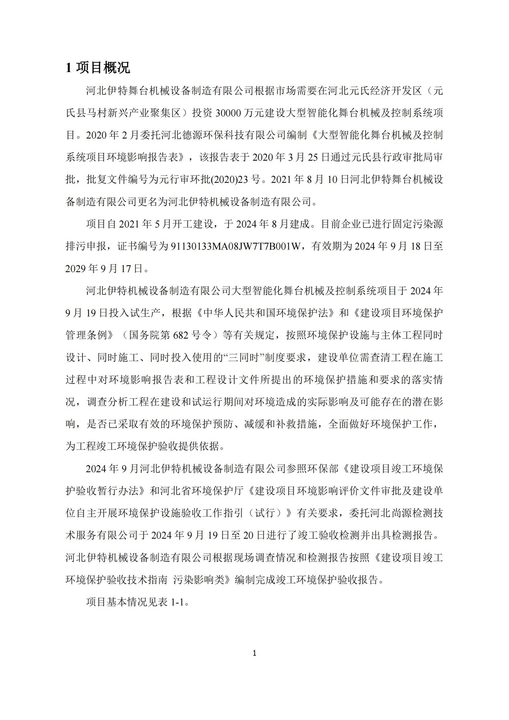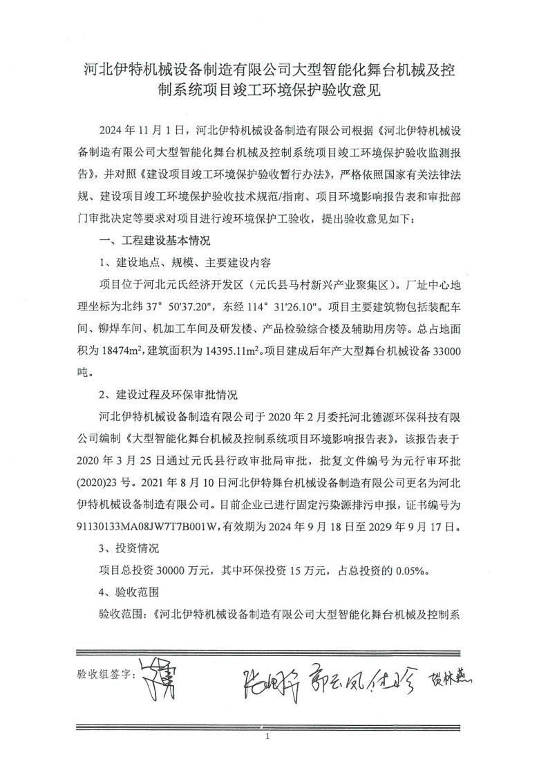 根据《国院关于改<建设项目环保护管理条例>的决定》(国务院令第682号)以及生态环境部《建设项目竣工环境保护验收暂行办法》和河北省环境保护厅《建设项目环境影响评价文件审批及建设单位自主开展环境保护设施验收工作指引(试行)的通知》(冀环办字[2017]727号)有关要求,现将IM平台_IM(中国)《IM平台_IM(中国)大型智能化舞台机械及控制系统项目竣工环境保护验收监测报告)公示如下: